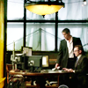 Description: Mr. Finch at a computer, Mr. Reese standing beside him